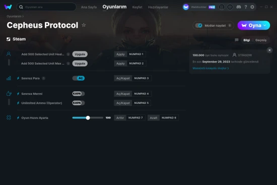 Cepheus Protocol öğreticimizde 6 hile bulunmaktadır ve Steam platformu desteklemektedir. WeMod sayesinde bu oyunda ve çok daha fazlasında hile yap!