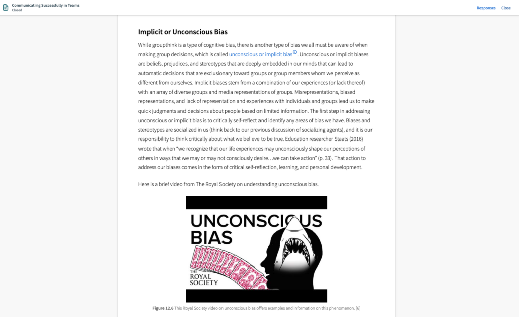 As a professor with a personal and professional mission to advance diversity, equity and inclusion (DEI) in education, she found her static textbook fell short in tackling timely topics and taking into account students’ own intersectional identities. Part of her commitment to furthering equity in the classroom also involves reducing course fees—in the form of expensive print texts—where possible. But that’s not all: Lazic’s team of GTAs were hampered by a print textbook that couldn’t be customized to speak to their diverse areas of expertise. Nor could they rely on their text to host timely discussions on preparing for a job interview.